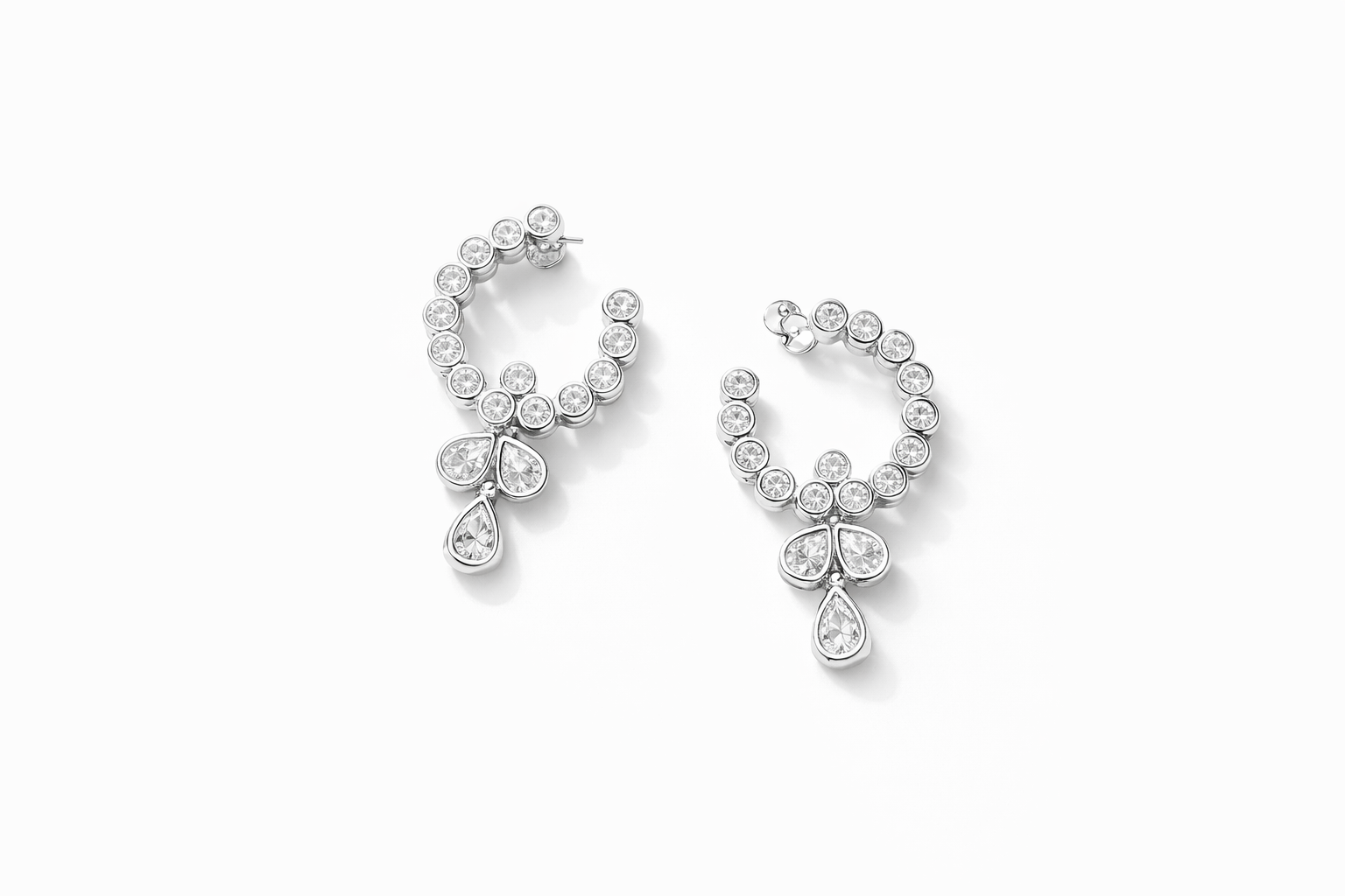 گوشواره نقره ایتالیایی🇮🇹 مدل نیم دایره اشک کد ۱۳۰۹