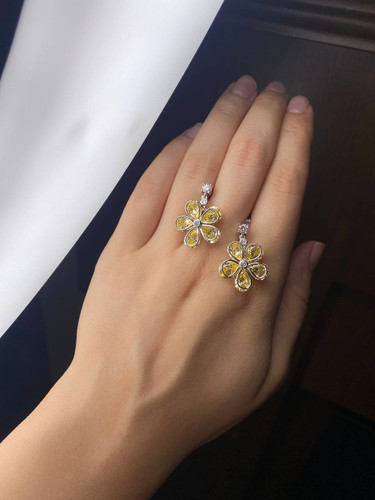 گوشواره جواهری سیترین گل کد ۱۰۹۲