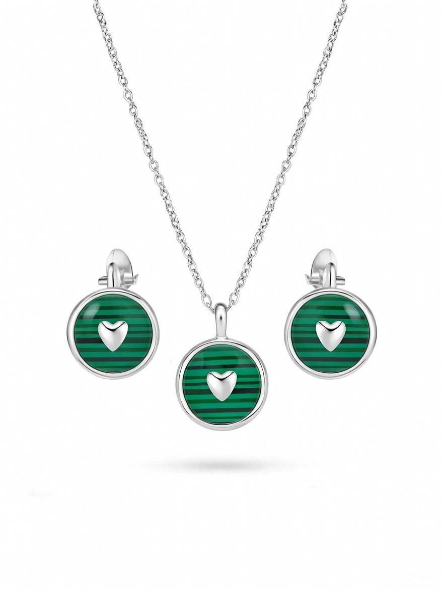 نیم ست نقره زنانه نگین مالاکیت سبز مدل قلب کد ۱۳۴۲ OA