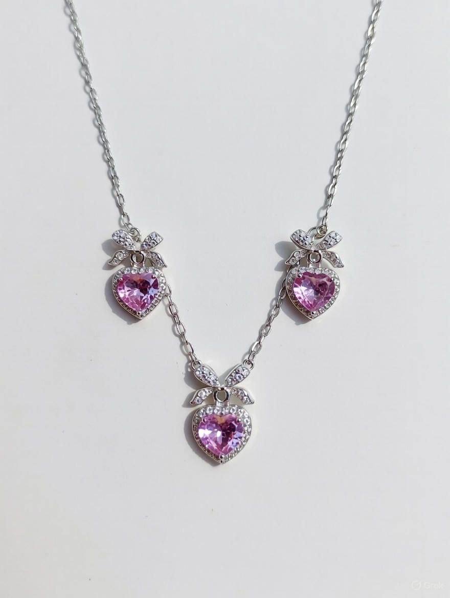 نیم ست زنانه نقره مدل قلب نگین صورتی کد ۱۳۴۳ wa