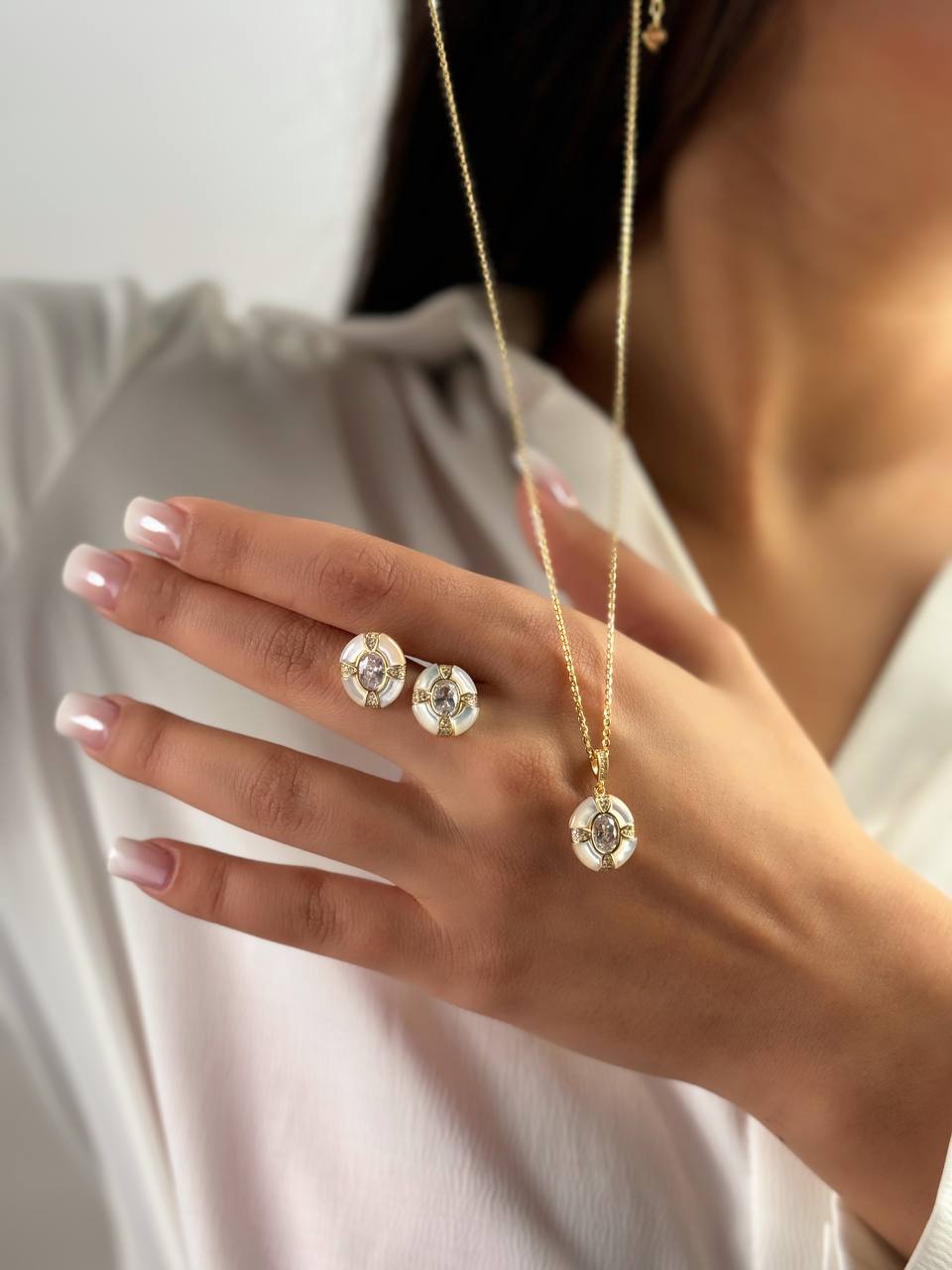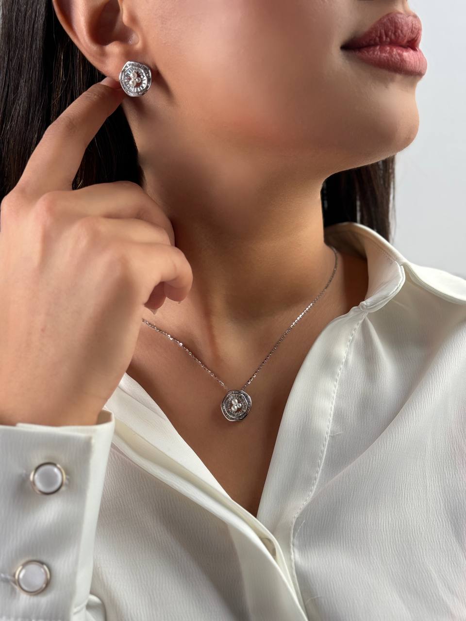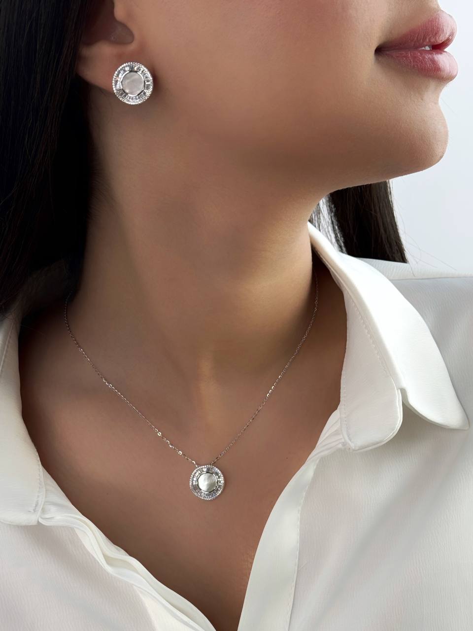 نیم ست جواهری صدفی مینیمال نقره زنانه کد ۱۴۱۰ wa