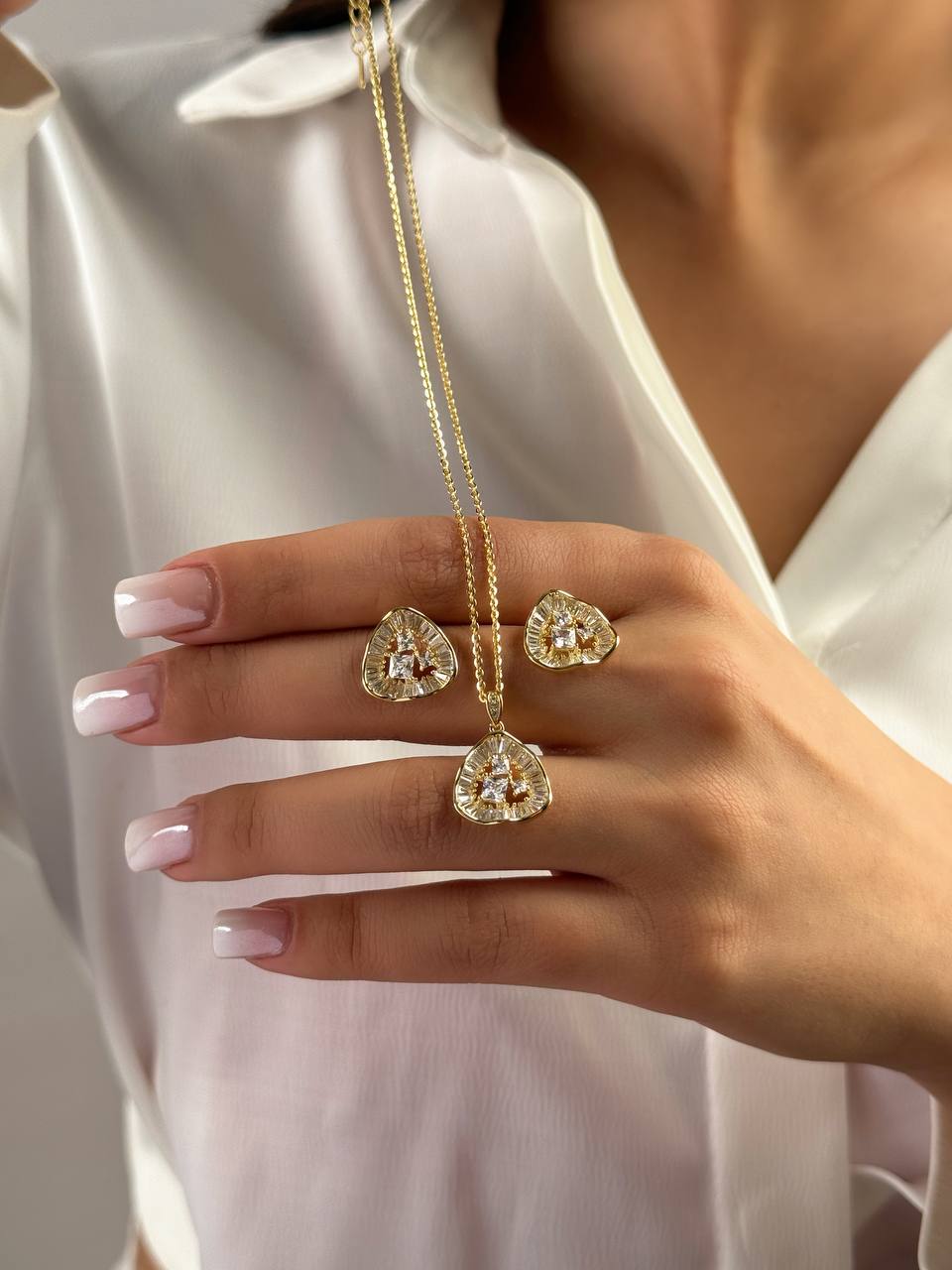 نیم ست اشکی زنانه نمای طلا جنس نقره کد ۱۴۰۳ wa