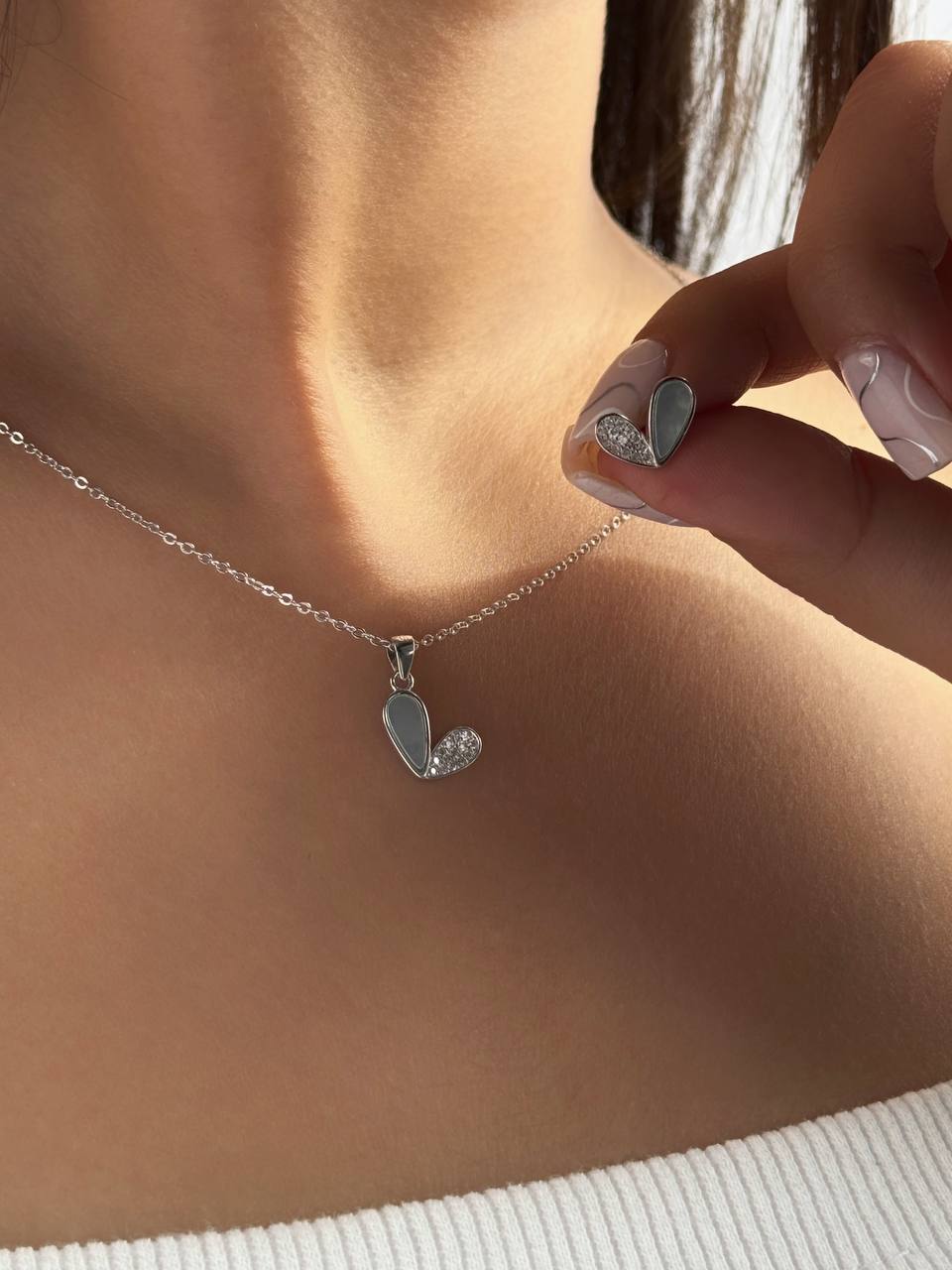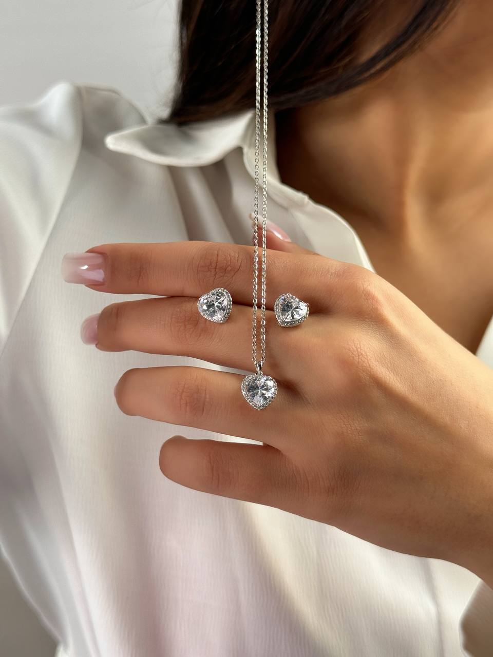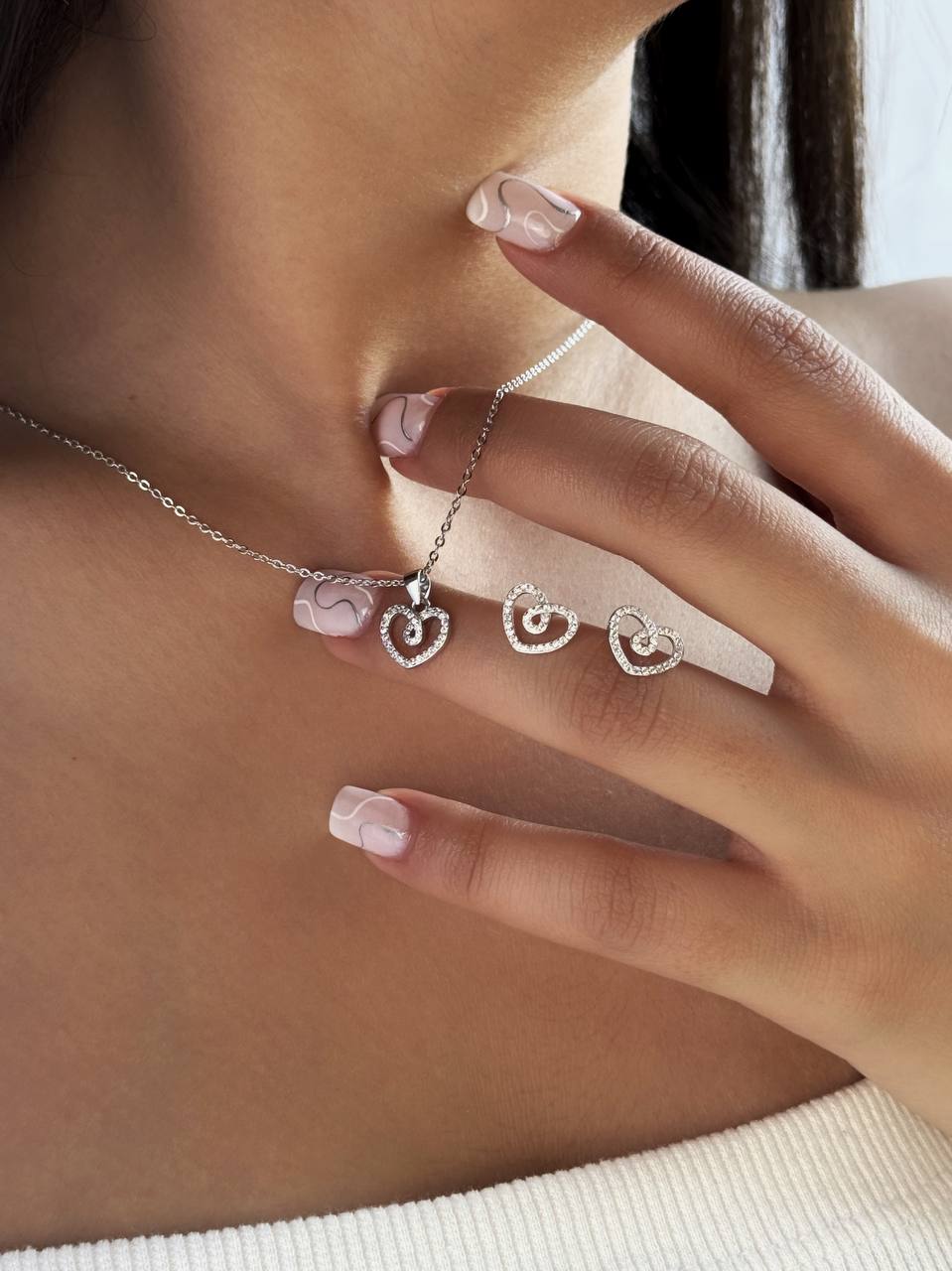 نیم ست مینیمال جواهری دخترانه مدل قلب جنس نقره کد ۱۴۰۹ wa