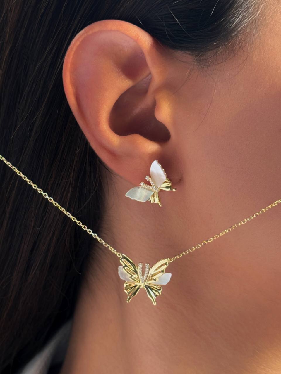 نیم ست دخترانه نقره مدل پروانه نمای طلا آبکاری طلا کد ۱۴۲۸ wa