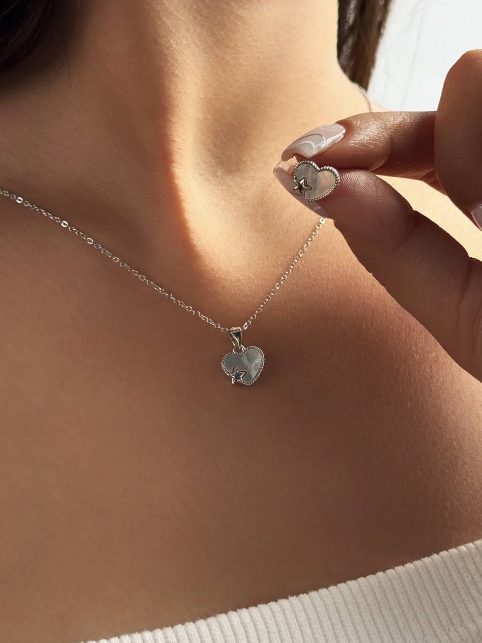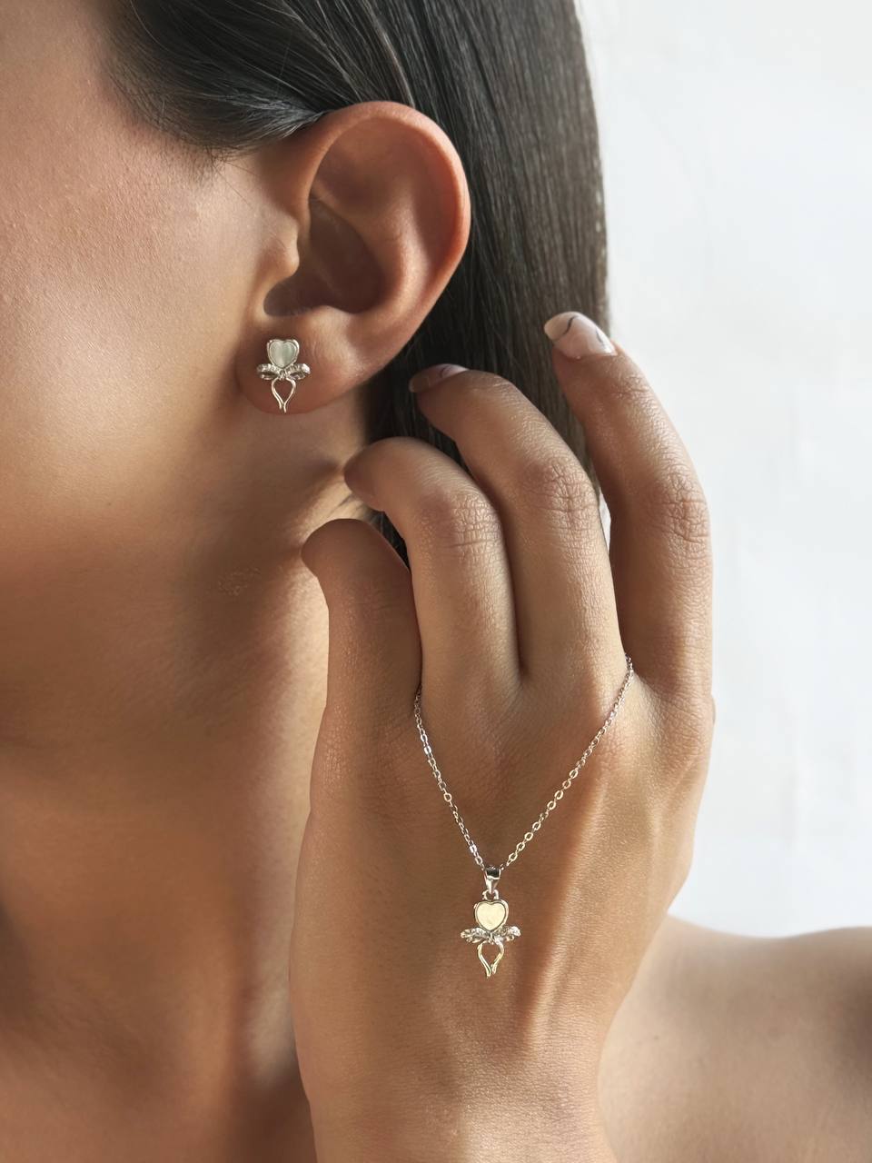 نیم ست مینیمال نقره طرح قلب نگین صدفی کد ۱۴۴۱ pa