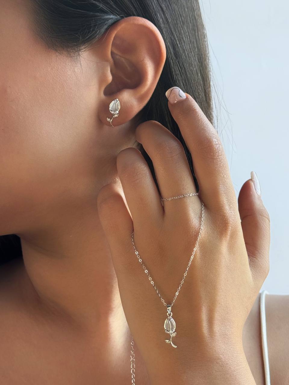 نیم ست زنانه مینیمال نقره مدل گل رز کد ۱۴۳۸ ba