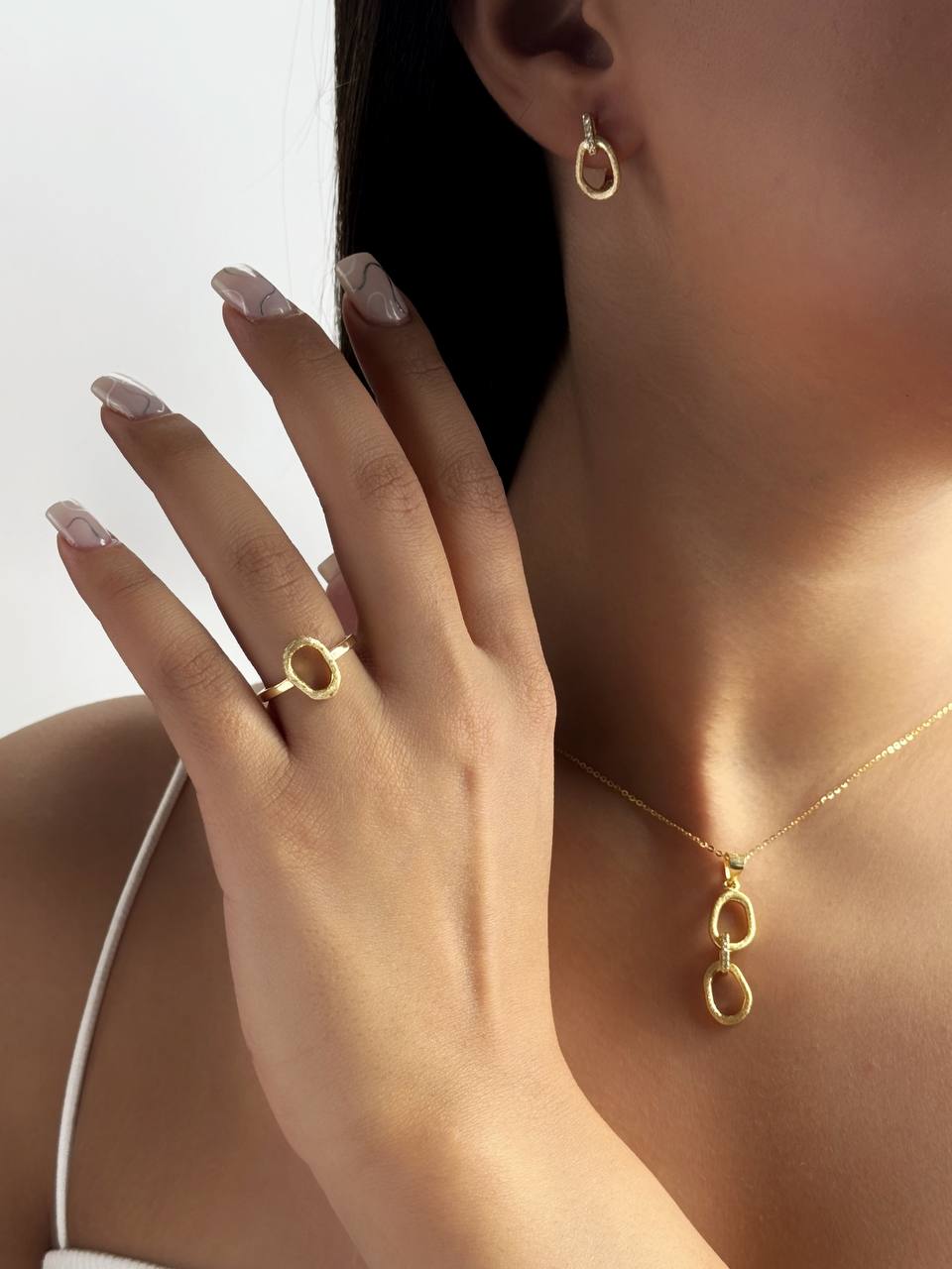 نیم ست نمای طلای نقره طرح دایره تو خالی کد ۱۴۴۴ ba