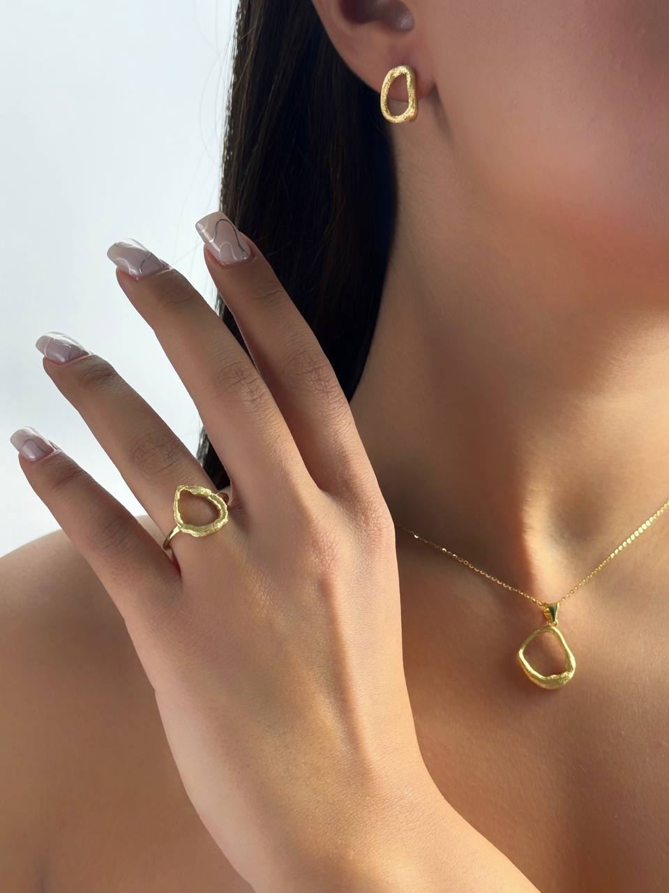 نیم ست نقره زنانه اشکی رنگ طلایی کد ۱۳۳۵ wa