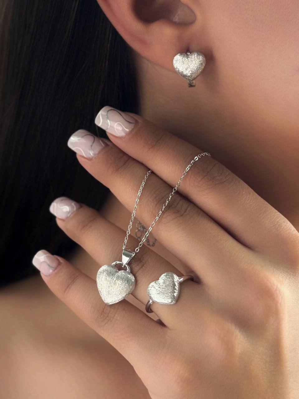 نیم ست قلبی نقره زنانه کد 758