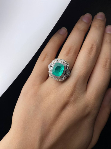 انگشترنقره زنانه زمرد برزیل مربعی s007