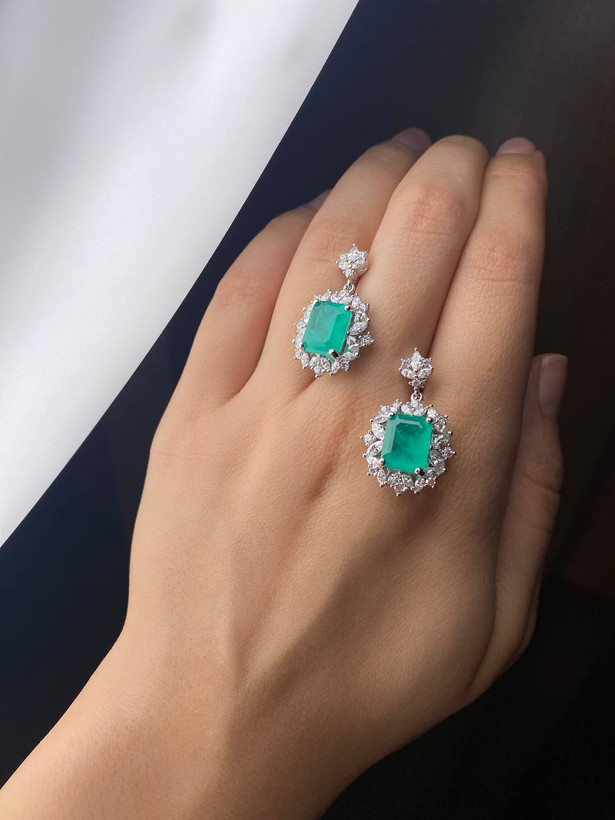 گوشواره جواهری زمرد مربع کد ۱۰۹۸