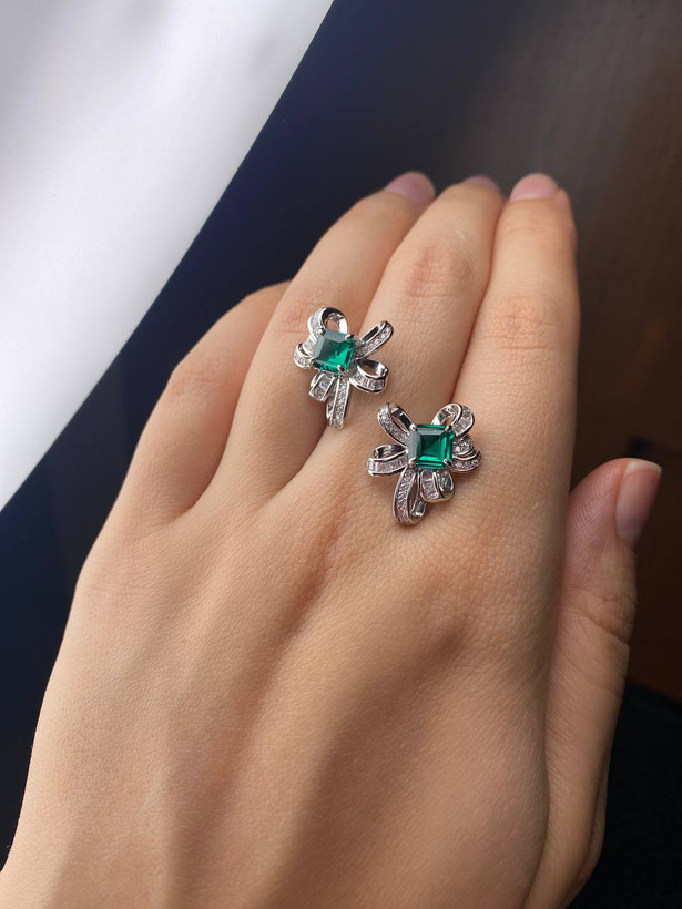 گوشواره جواهری زمرد مربع مدل پاپیون کد ۱۱۰۲