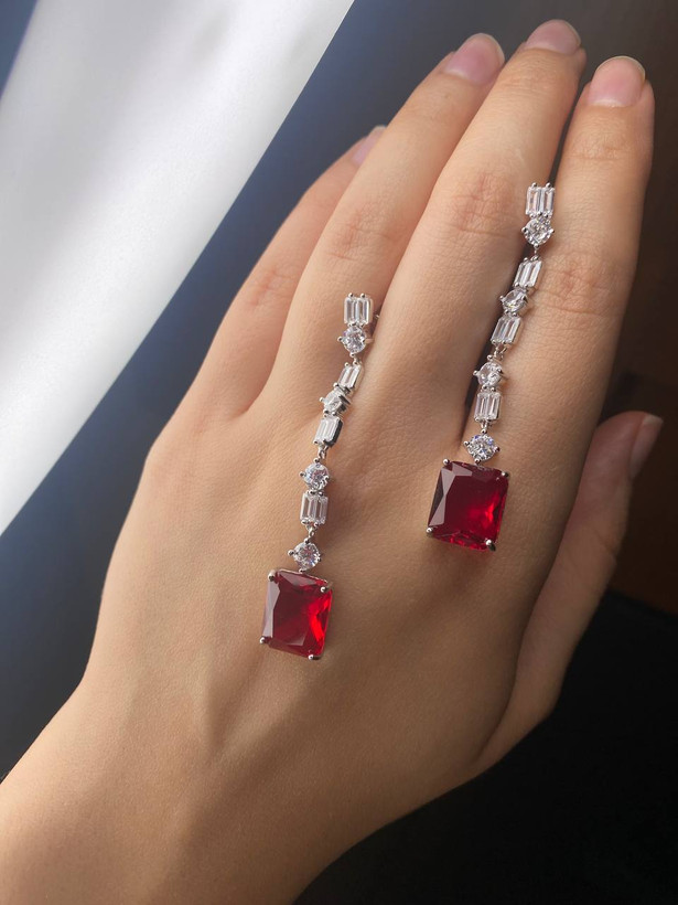 گوشواره جواهری یاقوت سرخ مربعی کد ۱۱۴۰