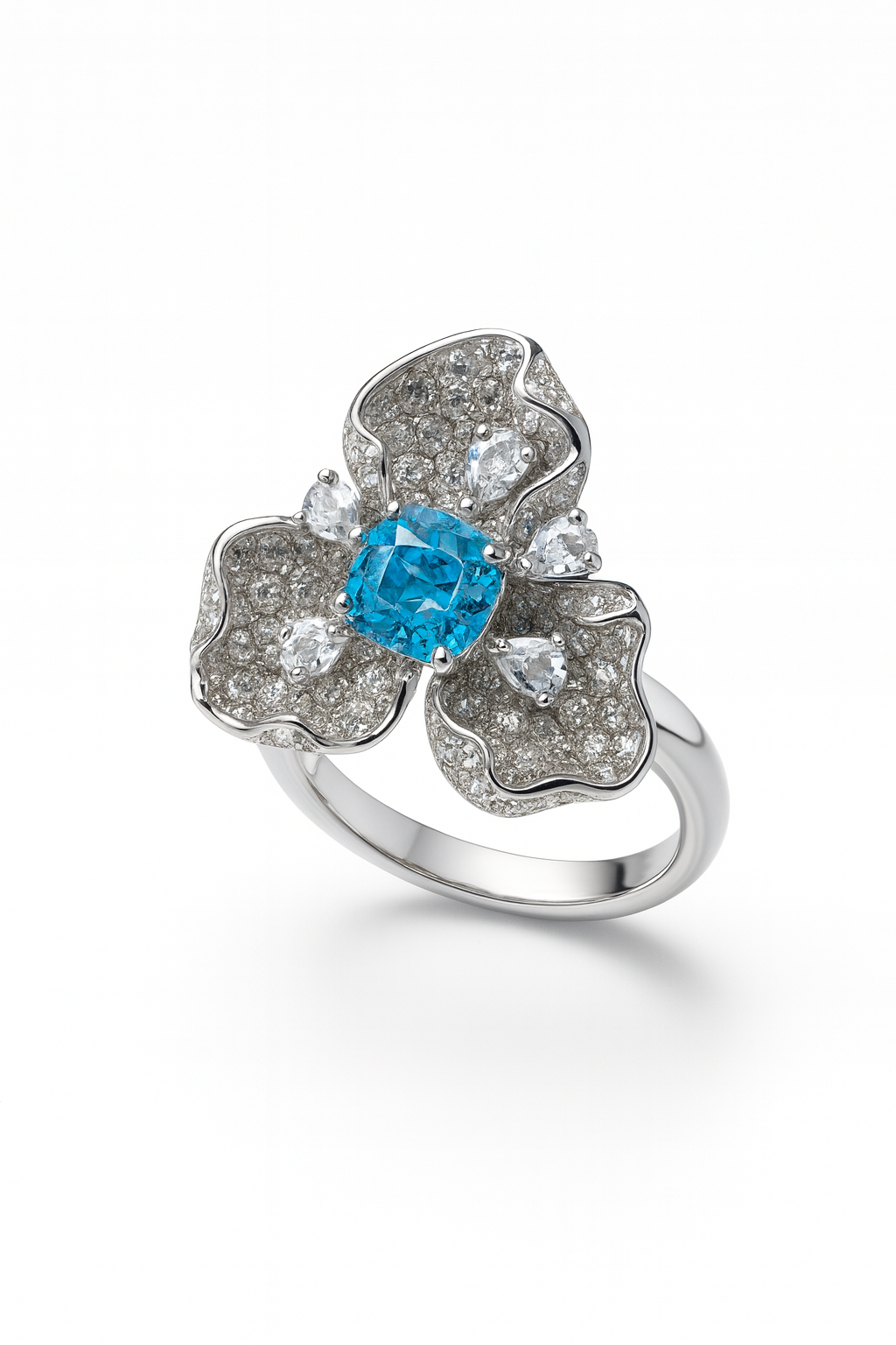 انگشتر جواهری گل توپاز کد ۱۱۶۶