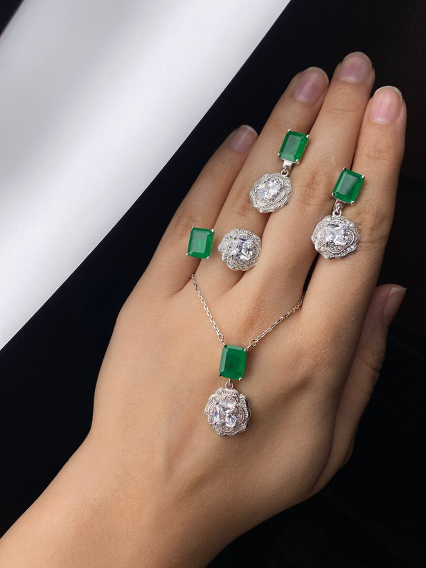 نیم ست جواهری زمرد کد ۱۱۷۳