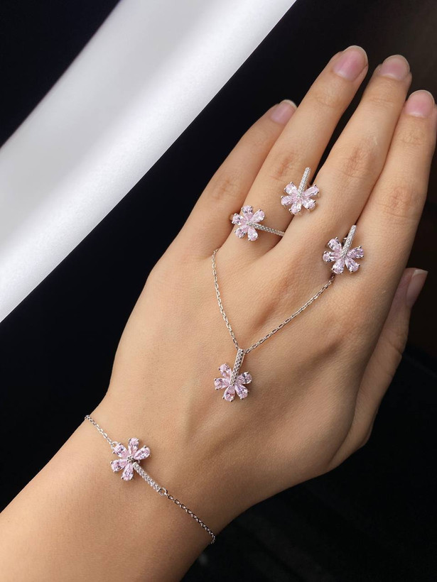 نیم ست جواهری کوارتز صورتی کد ۱۱۷۴