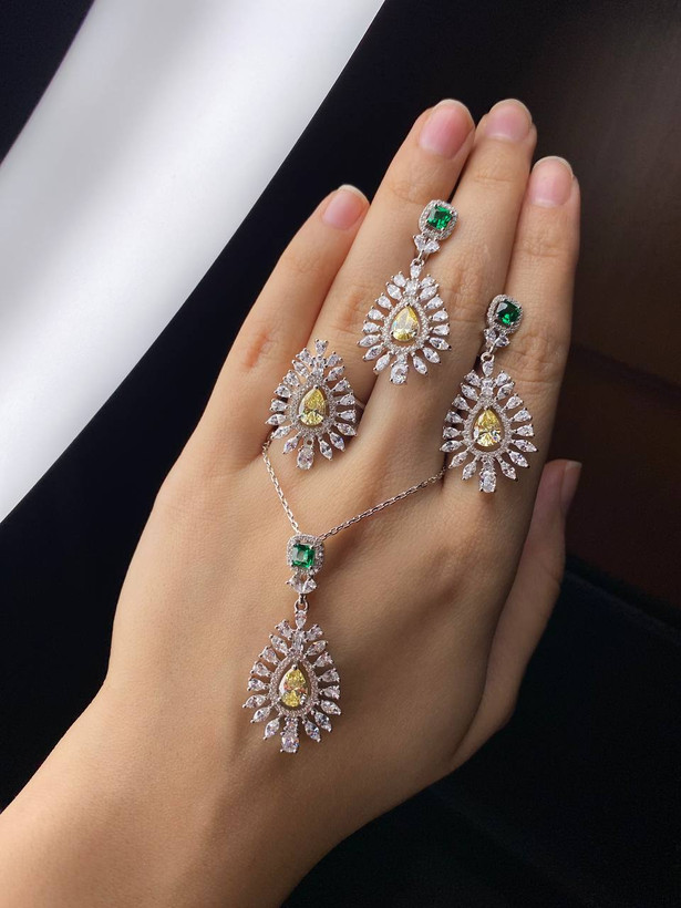 نیم ست جواهری سیترین کد ۱۲۱۱