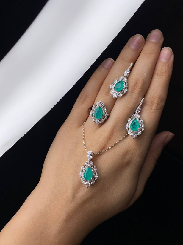 نیم ست جواهری زمرد کد ۱۲۱۹