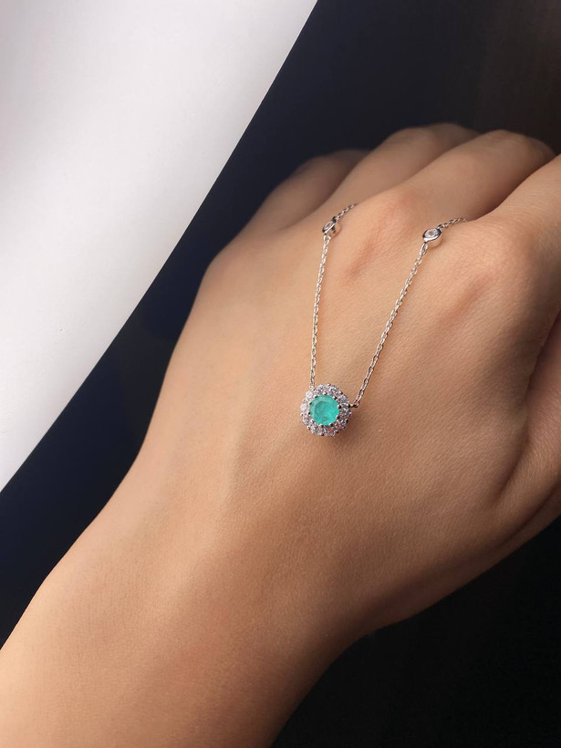 یکی از نکات برجسته این گردنبند، استفاده از سنگ زمرد برزیلی طبیعی است که از نظر زیبایی و کیفیت در میان دیگر انواع سنگهای زمرد از جایگاه بالاتری برخوردار است. زمرد برزیلی بهدلیل رنگ غنی و شفافیت بالای خود، در جواهرسازیهای سطح جهانی محبوبیت زیادی دارد. نقره 925 (یا نقره استرلینگ) نیز از متریالهای بسیار مرغوب در صنعت جواهرسازی است که نه تنها از مقاومت بالایی برخوردار است، بلکه رنگ درخشان و زیبایی خاصی به جواهر میبخشد. بنابراین، گردنبند نقره زنانه با سنگ زمرد برزیلی، در بخش کیفیت نیز امتیاز بالایی دارد.