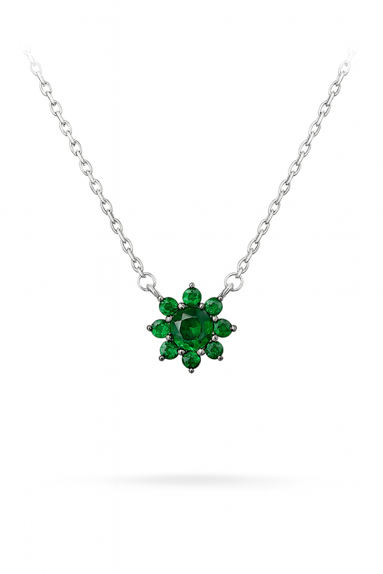 نقد و بررسی گردنبند زنانه خورشیدی با سنگ زمرد برزیل