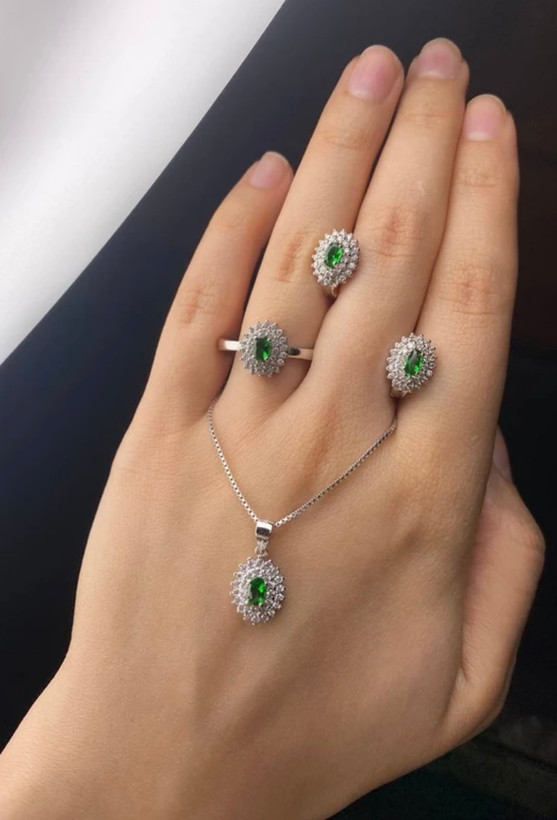 نیم ست زمرد وارداتی جواهری نقره کد ۱۲۷۰