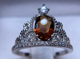 تک نگین روی این انگشتر نقره در هر رنگی موجود است. تک نگین این انگشترتاجی شکل نقره، از نوع زیرکن اتریشی است. این نگین رنگی کاملا درخشنده و براق است و برش برلیان دارد. نگین های ریز سفید انگشتر نیز از نوع اتریشی و کاملا براق است.
