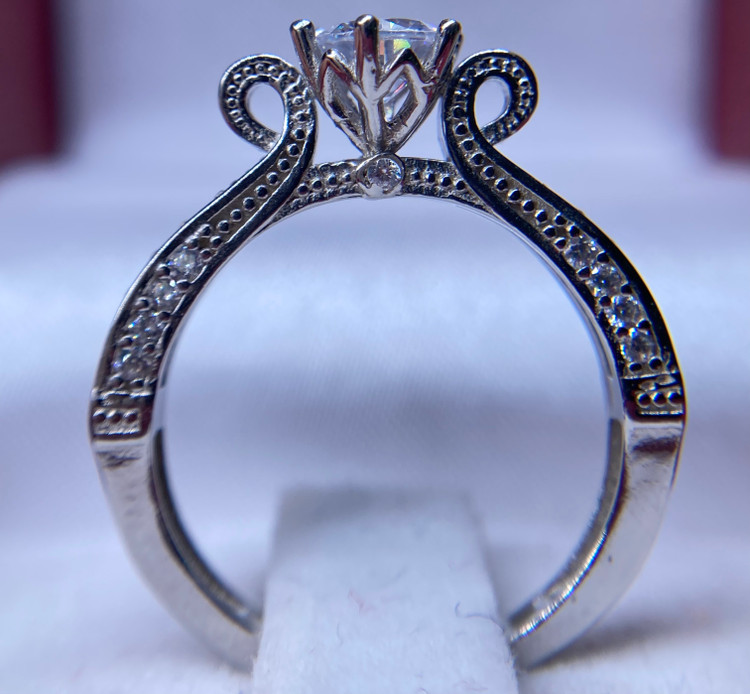 انگشتر نقره نامزدی تک نگین گرد با جنس نقره عیار 925 انگشتری بینظیر و بسیار زیبا برای حلقه ازدواج است. نگین گرد برش خورده مشابه الماس به صورت برجسته بر روی انگشتر قرار گرفته است. نگینهای ریز گرد اتریشی نیز نیمی از پایه انگشتر زنانه را پوشانده اند. طرح بسیار زیبا و سلطنتی این انگشتر موجب ظاهری لوکس و پرطرفدار شده است. برای اینکه زیبایی سولیتر شما بیشتر نمایان شود میتوانید پشت حلقه ای نگین گرد یا بیضی را در مراسم نامزدی انتخاب کنید. همچنین با خرید گردنبند تک نگین بزرگ ستی متفاوت و خاص با سولیتر خود خواهید داشت.