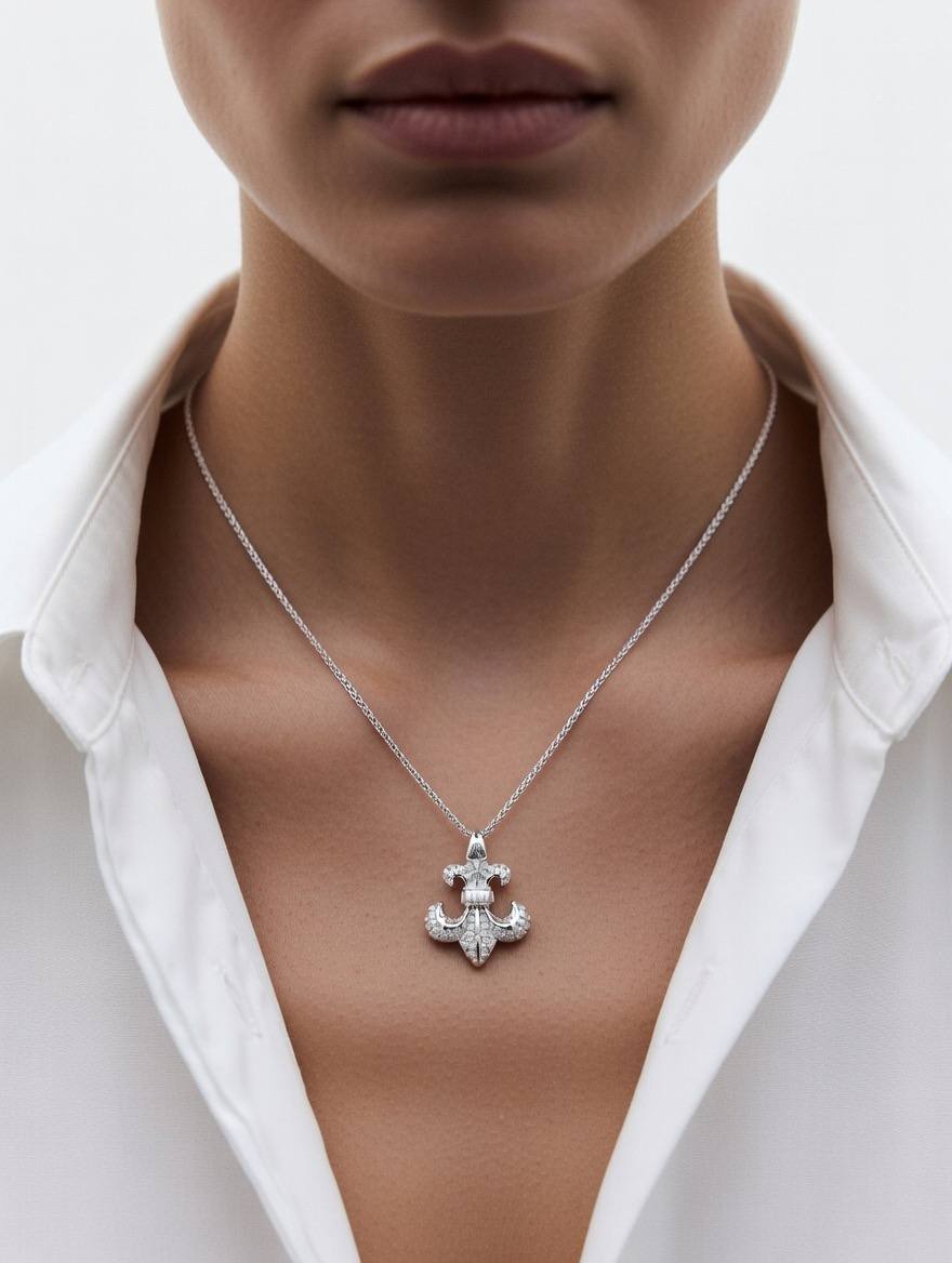گردنبند زنانه مدل لنگر آبکاری طلا سفید جنس نقره کد ۱۴۱۷ vip