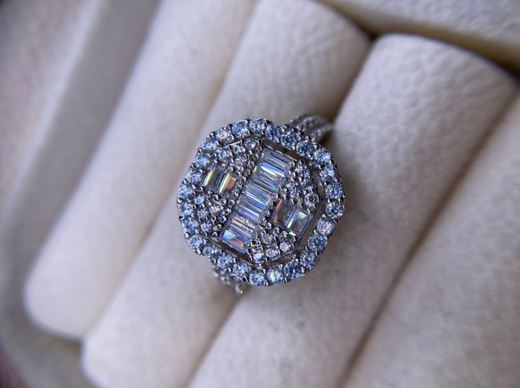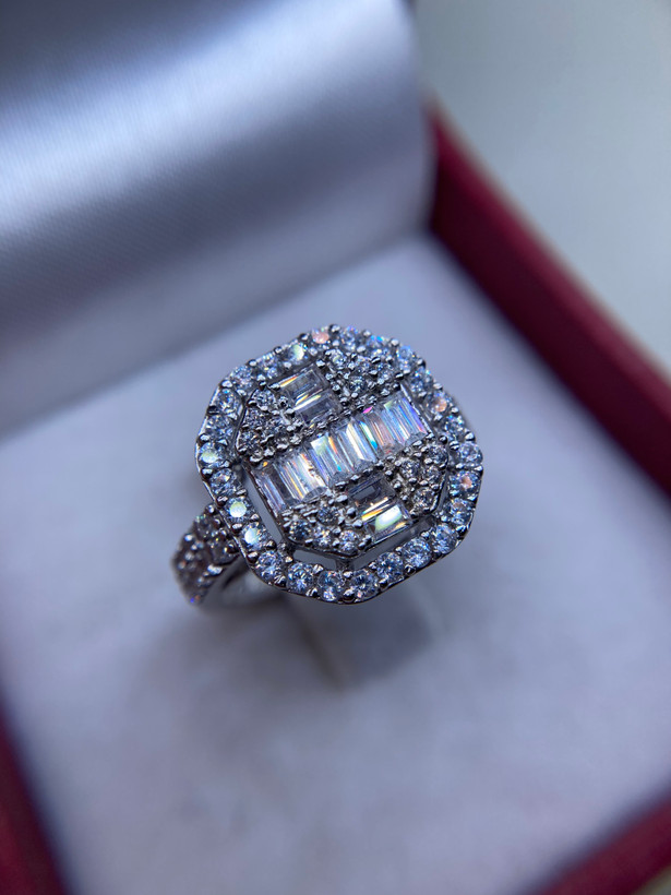 نگین های باگتی، درخشش بسیار بالاتری نسبت به نگین های گرد داشته و همانند الماس در دستان شما می درخشند. اگر قصد خرید انگشتر نقره دارید که هم با کیفیت باشد، هم نسبت به طلا و جواهر قابل شناسایی نباشد، این انگشتر را به شما پیشنهاد می کنیم.