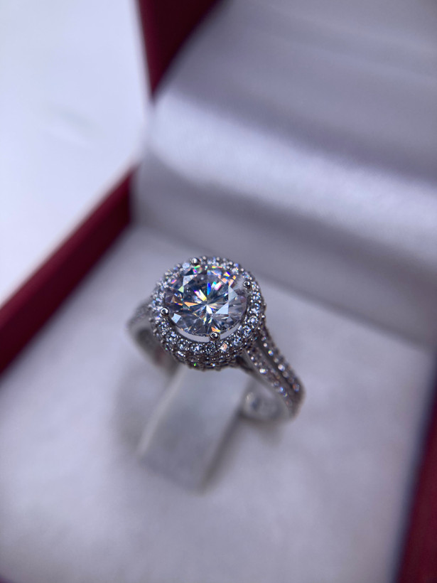 نگین این انگشتر از نوع اتریشی با برش برلیان است. همچنین کلیه نگین ها مخراج کاری شده و نخواهند افتاد. درخشندگی نگین ها همچون برلیان بوده و به دلیل کیفیت بالا کدر نمی شوند.