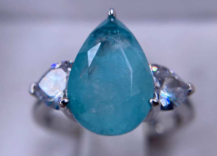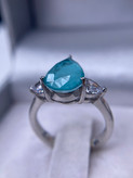انگشترنقره زنانه طرح اشک نگین دابلت آکوامارین