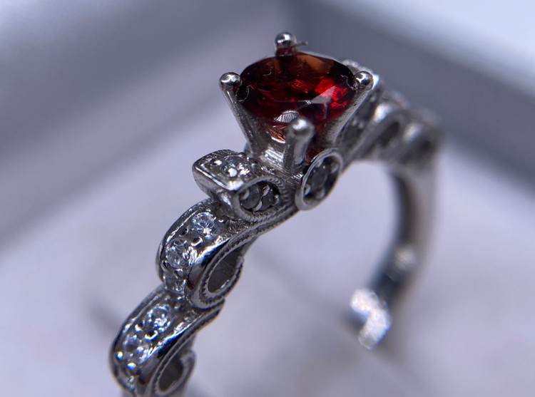 متاسفانه این کالا در حال حاضر موجود نیست. میتوانید از طریق لیست بالای صفحه، از محصولات مشابه این کالا دیدن نمایید.نگین استفاده شده در این انگشتر گارنت می باشد،این گوهر قدمتی 5000 ساله دارد و از انواع این سنگ در عهد باستان به عنوان جواهر استفاده می شده است.