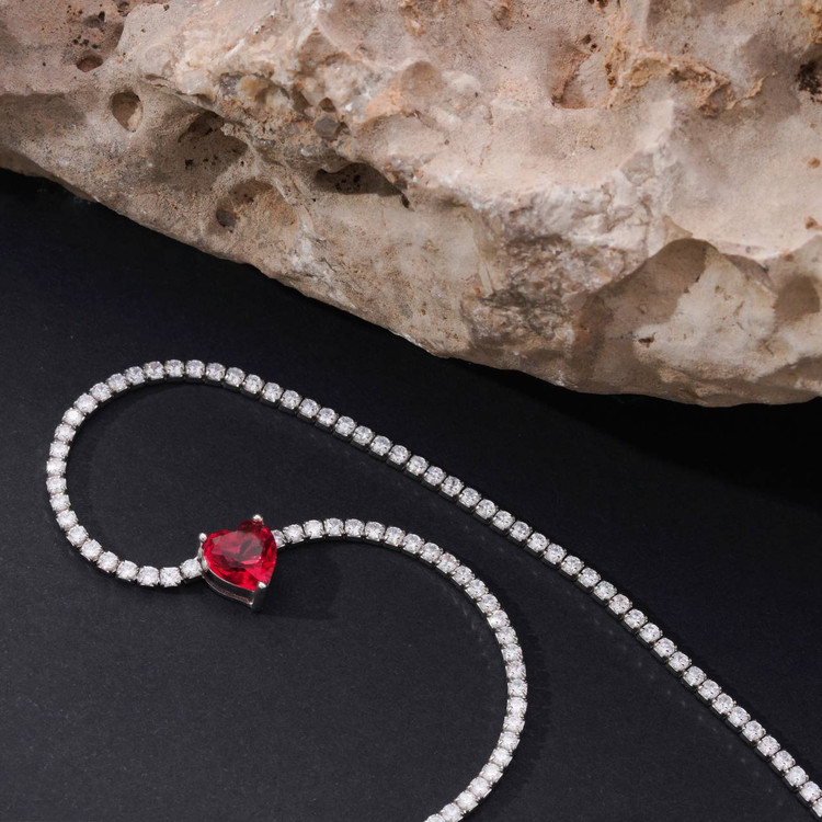 گردنبند نقره قلبی یاقوت سرخ زنانه کد 509
