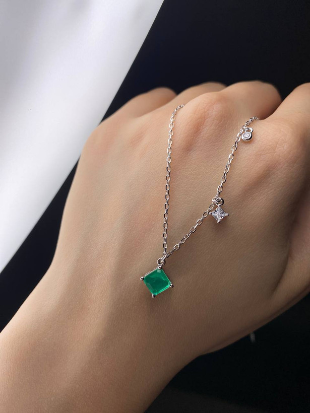 گردنبند مینیمال زمرد نقره زنانه کد 685