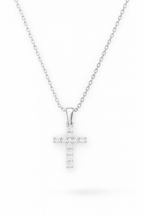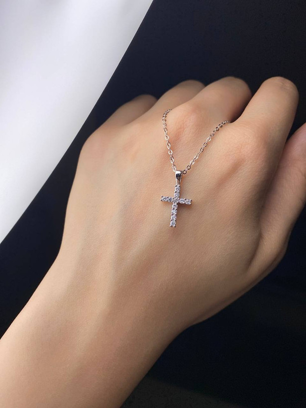 گرنبند صلیب نقرهای با روکش طلا سفید