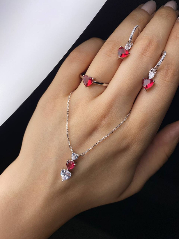 نیم ست قلبی نقره زنانه کد 758