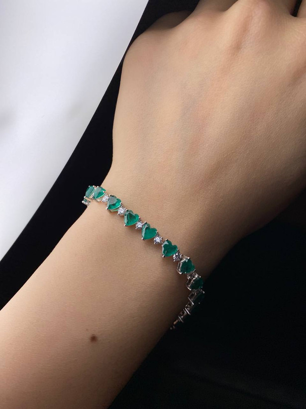 دستبند قلبی زمرد برزیل نقره زنانه-مناسب کادو ولنتاین کد 794