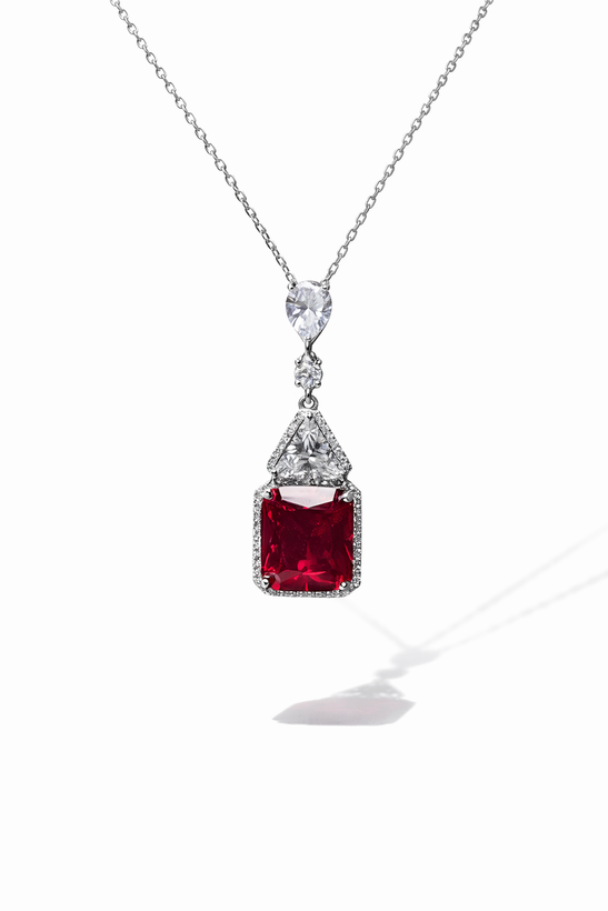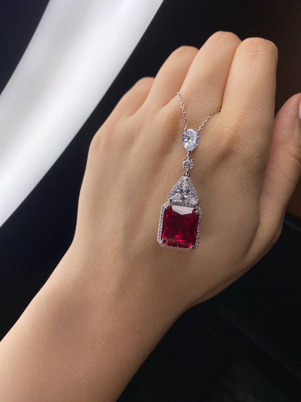 گردنبندجواهری یاقوت مربع نقره ایتالیا کد ۹۳۱