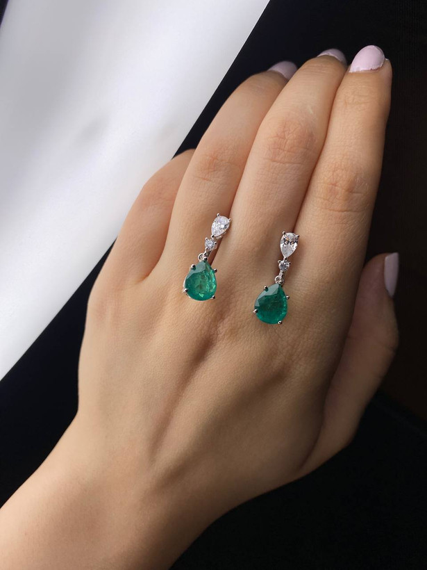 گوشواره زمرد جواهری نقره ایتالیا کد۹۶۶