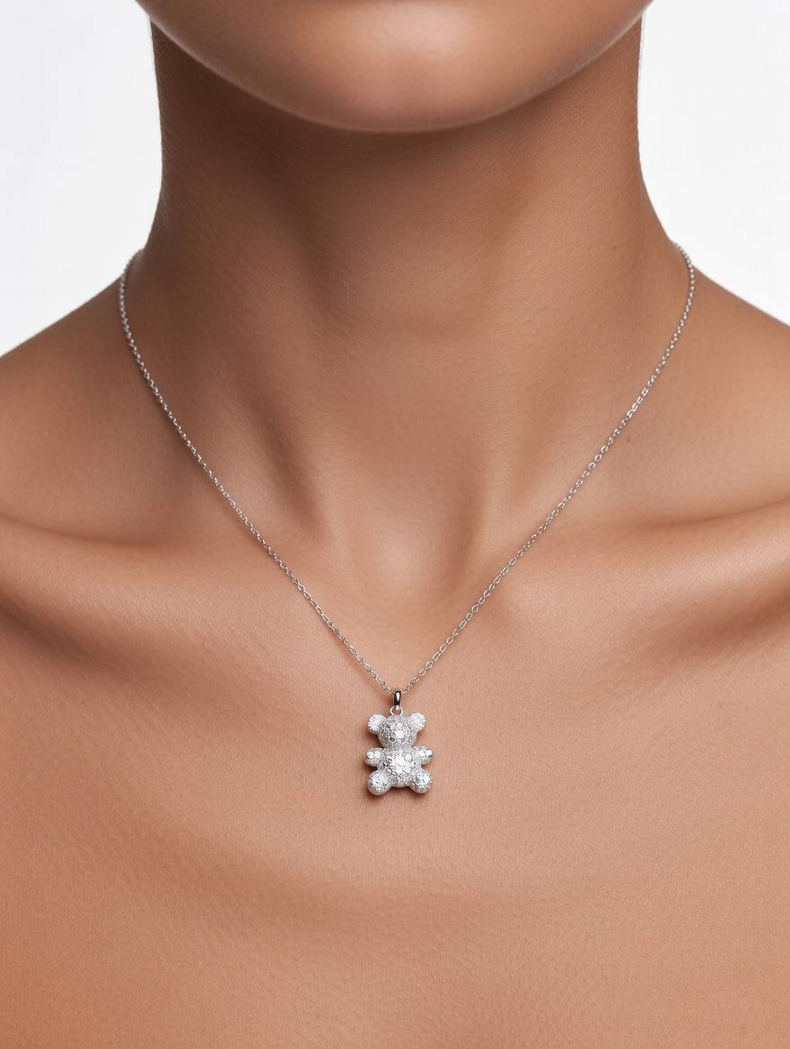 گردنبند دخترانه نقره مدل خرس کد ۱۳۳۸ wa