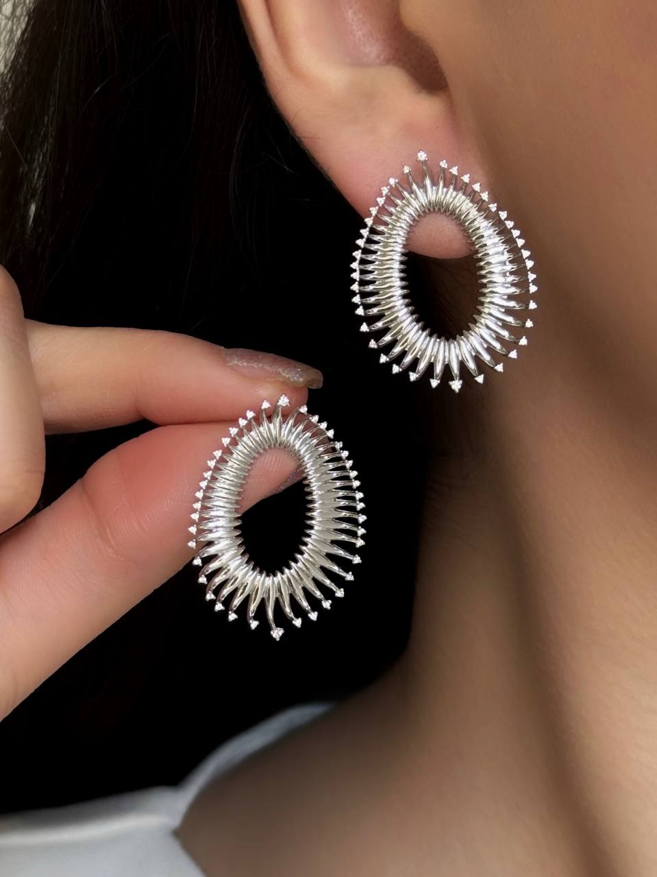 گوشواره زنانه نقره مدل بیضی خورشیدی برند خارجی کد ۱۳۳۱ vip