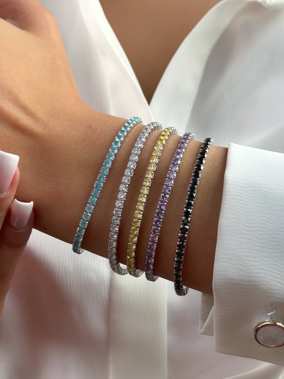دستبند تنیسی رنگی کشی نقره زنانه کد ۱۴۱۱ ta