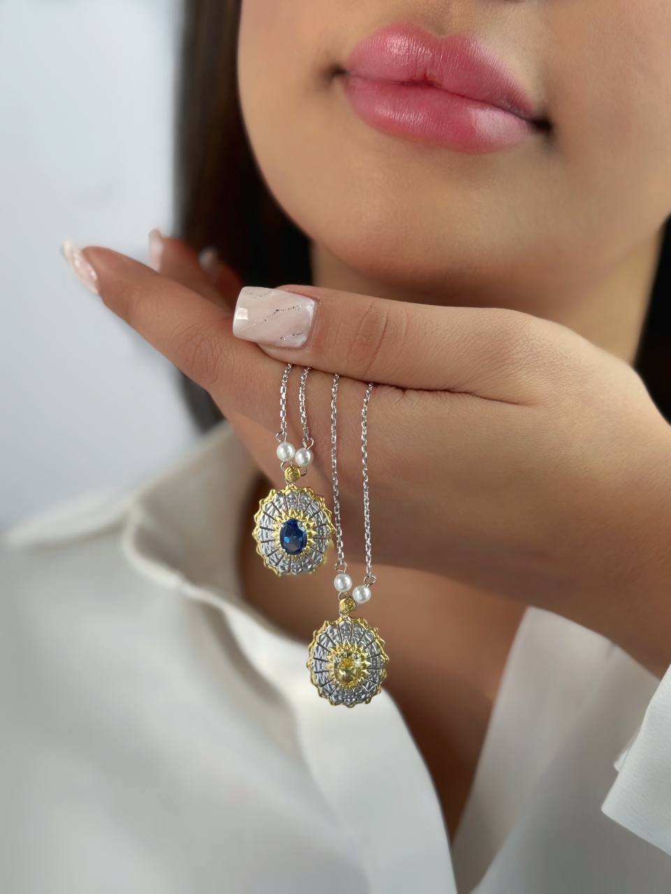 گوشواره زنانه نقره مدل بیضی خورشیدی برند خارجی کد ۱۳۳۱ vip