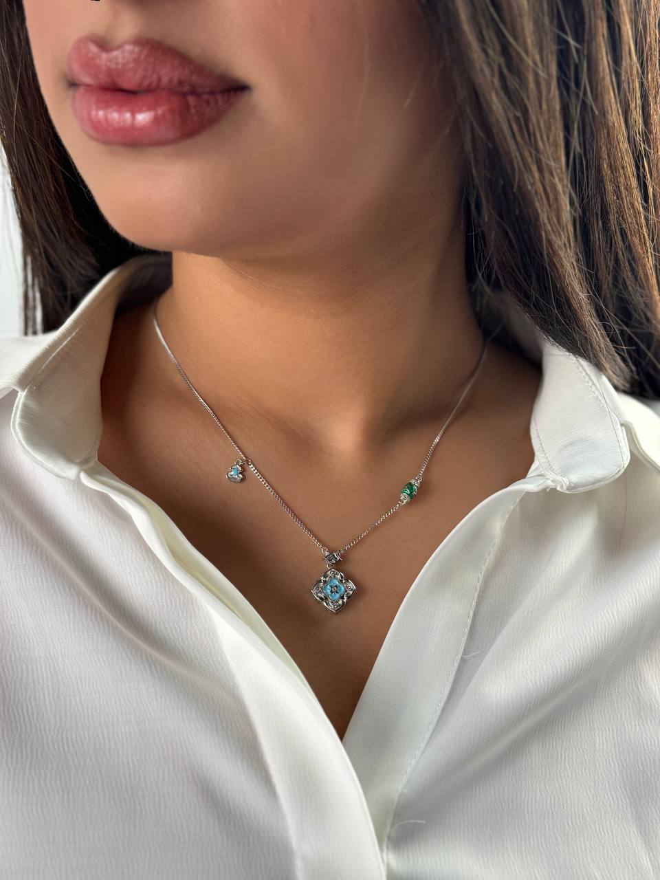 گردنبند نقره زنانه/زمرد کد 705