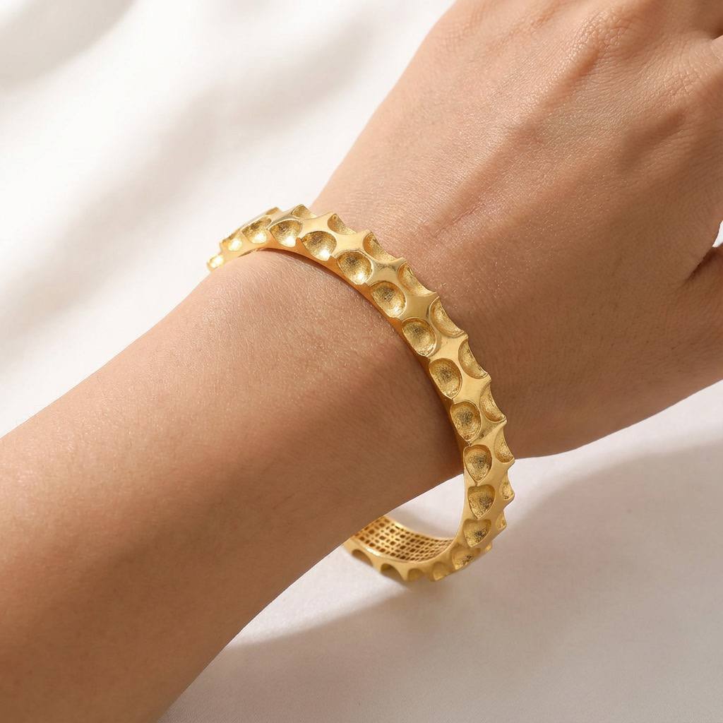 دستبند بنگل زنانه نقره آبکاری طلا سبک کد ۱۳۵۱ sb