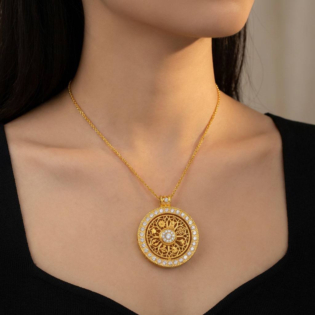 گردنبند مدالی طرح طلا گرد زنانه نقره ۱۳۷۰