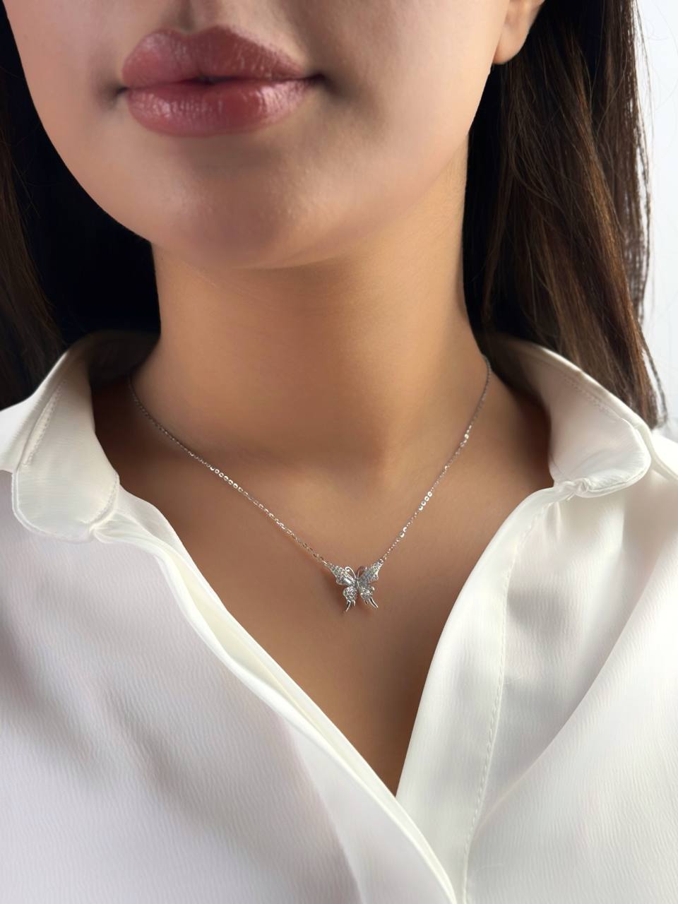 گردنبند دخترانه نقره مدل پروانه ای کد ۱۳۲۰ pa