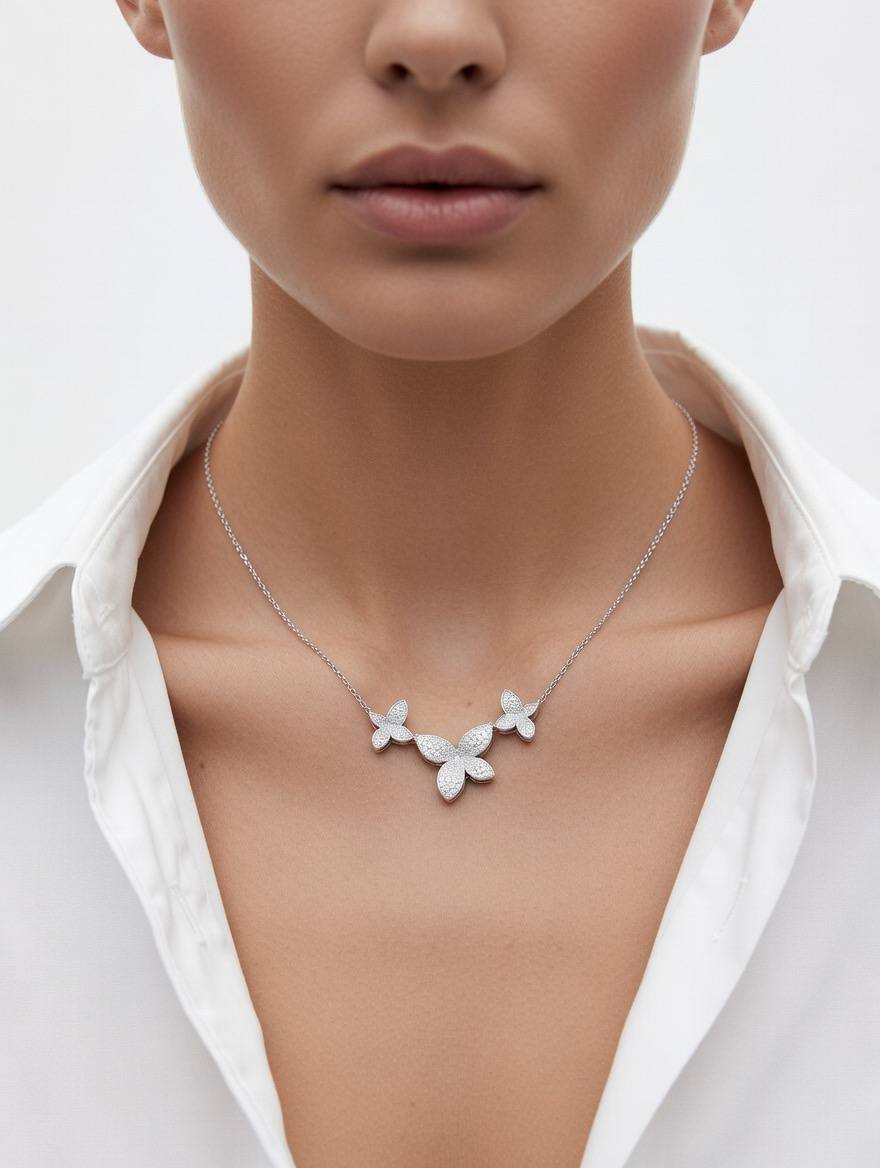 گردنبند زنانه نقره مدل ۳گل آبکاری طلا سفید کد ۱۴۶۵ vip