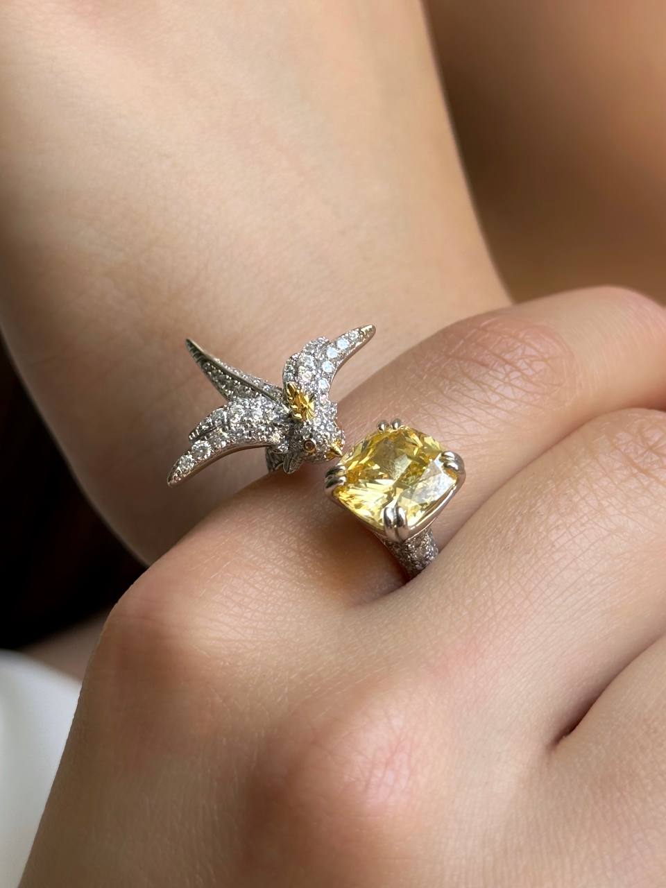 انگشتر نقره سیترین خارجی برند تیفانی مدل پرنده کد ۱۳۳۳ vip